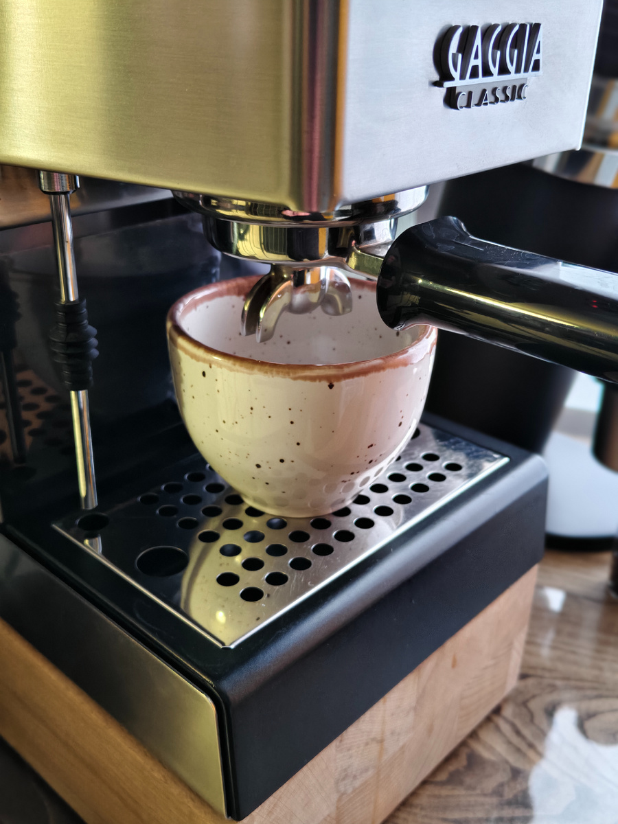 Эталонный результат: из 18 граммов кофе за 25 секунд должно получиться 36 граммов готового напитка. Приступим: измельчаем, выравниваем, темперуем и отправляем холдер в кофемашину. Повторяем процесс, пока не достигнем желаемого результата.