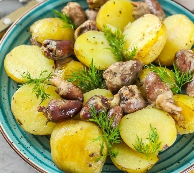 Кулинарное чудо: картошка с куриными сердечками в духовке