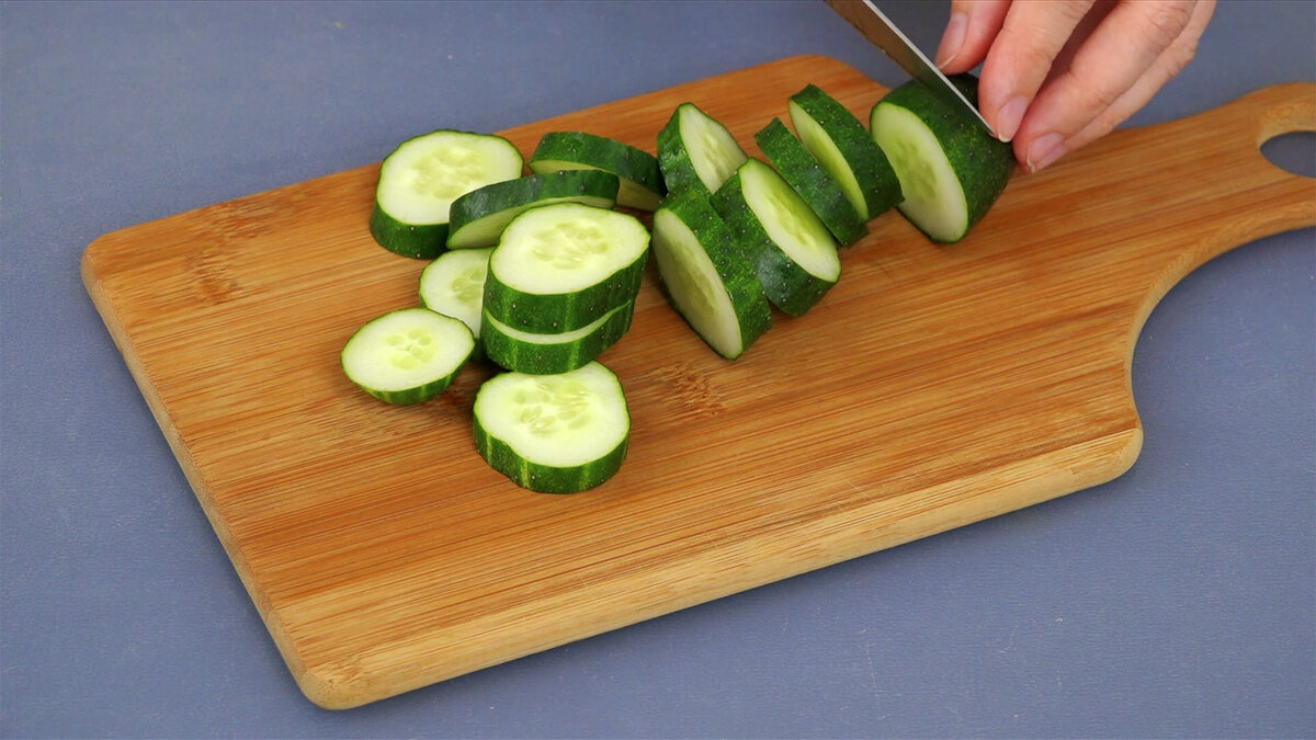 Ключ к успеху – свежий огурец. Начните с тщательной мойки овоща, затем нарежьте его тонкими кружками.