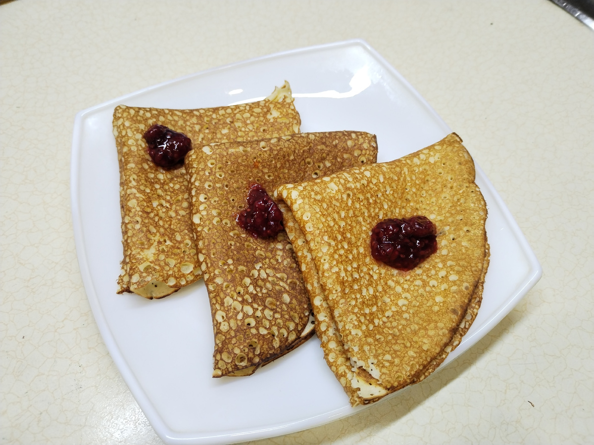 Разогреть сковороду и слегка смазать её маслом. Наливать тесто небольшими порциями и обжаривать блинчики до золотистого цвета с обеих сторон. В итоге получится около шести аппетитных блинчиков, которые можно подавать как на завтрак, так и в качестве десерта.