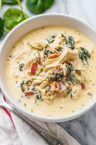 Зима – это время, когда особенно хочетсяWarm чего-то уютного и согревающего. Куринный суп с кремовым сыром, добавлением бекона и шпината станет настоящим кулинарным открытием для вас и ваших близких. Нежнейшее мясо курицы, сливочная текстура и пикантный вкус бекона формируют идеальный дуэт, наполняя дом атмосферой тепла и уюта.
