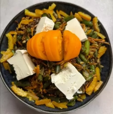 Начинается всё с классического способа – обжарки лука и моркови до золотистой корочки. Эта поджарка придаёт блюду не только насыщенный цвет, но и глубину вкуса. Параллельно с ними на сковороду добавляется фасоль, которая впитывает ароматы, оставаясь при этом хрустящей и аппетитной.