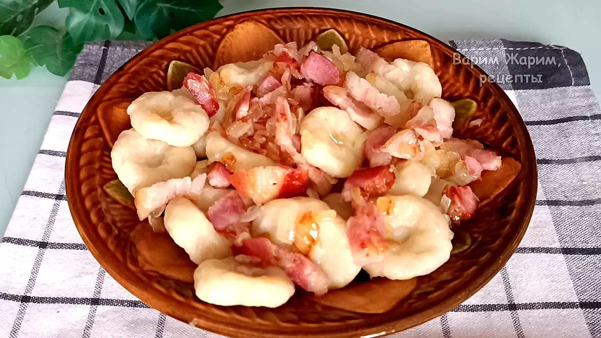 Готовые вареники стоит подавать с поджаркой из луком и грудинкой или с сливочным маслом, даже сметаной. Наслаждайтесь любимым блюдом с родственниками!