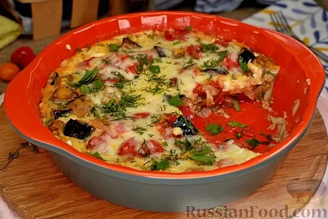 - Запеканка с баклажанами и помидорами: Баклажаны, обжаренные с луком и помидорами, запеченные с молочно-яичной заливкой — это настоящий гастрономический шедевр.