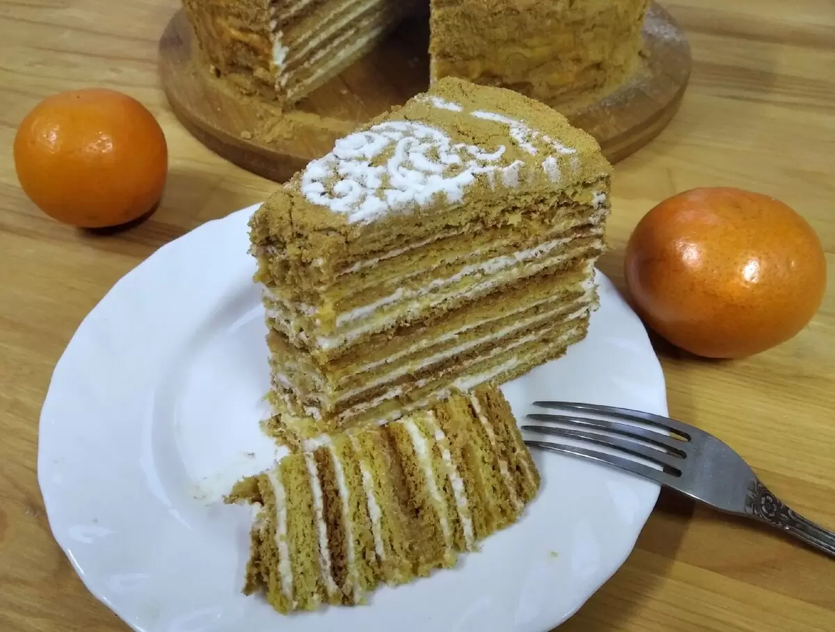 Украсить этот волшебный десерт можно по своему усмотрению, используя фрукты или орехи, чтобы добавить яркие ноты в новогоднее меню. Мандариновый медовик станет настоящей звездой вашего праздничного стола, наполняя каждый кусочек теплом и нежностью. Этот торт просто восхитителен и идеально подходит для новогоднего стола!