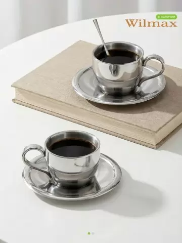 - Двустенная чашка с блюдцем для кофе. Элегантный и практичный выбор для ценителей хорошего кофе и стильного сервировки.