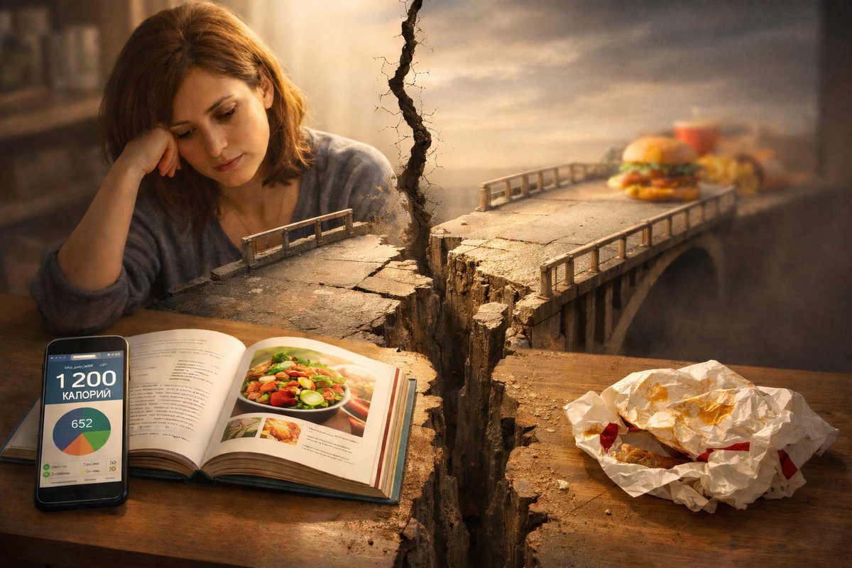 Многие сталкиваются с парадоксом: люди отлично ориентируются в правилах диетологии, знают о калориях, пропорциях питательных веществ и роли овощей и сахара в рационе. Тем не менее, их вес остается на месте или даже возвращается после временного похудения. Почему так происходит?