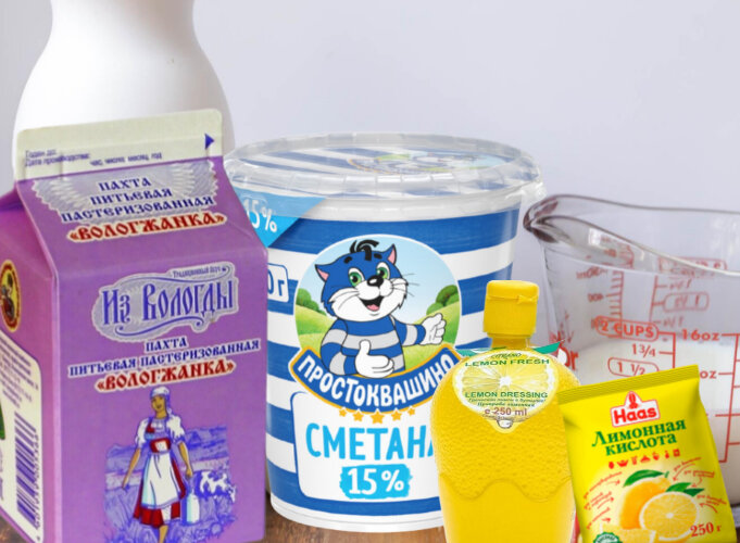 - Пахта со сметаной: 125 мл молока и 125 г сметаны.