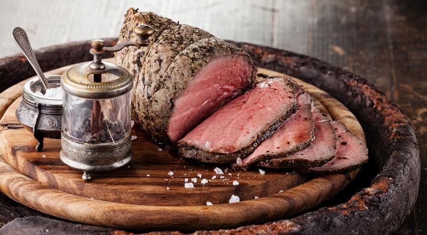 - 1–1,3 кг мякоти говядины с жировыми прослойками в одном куске (толстый край)