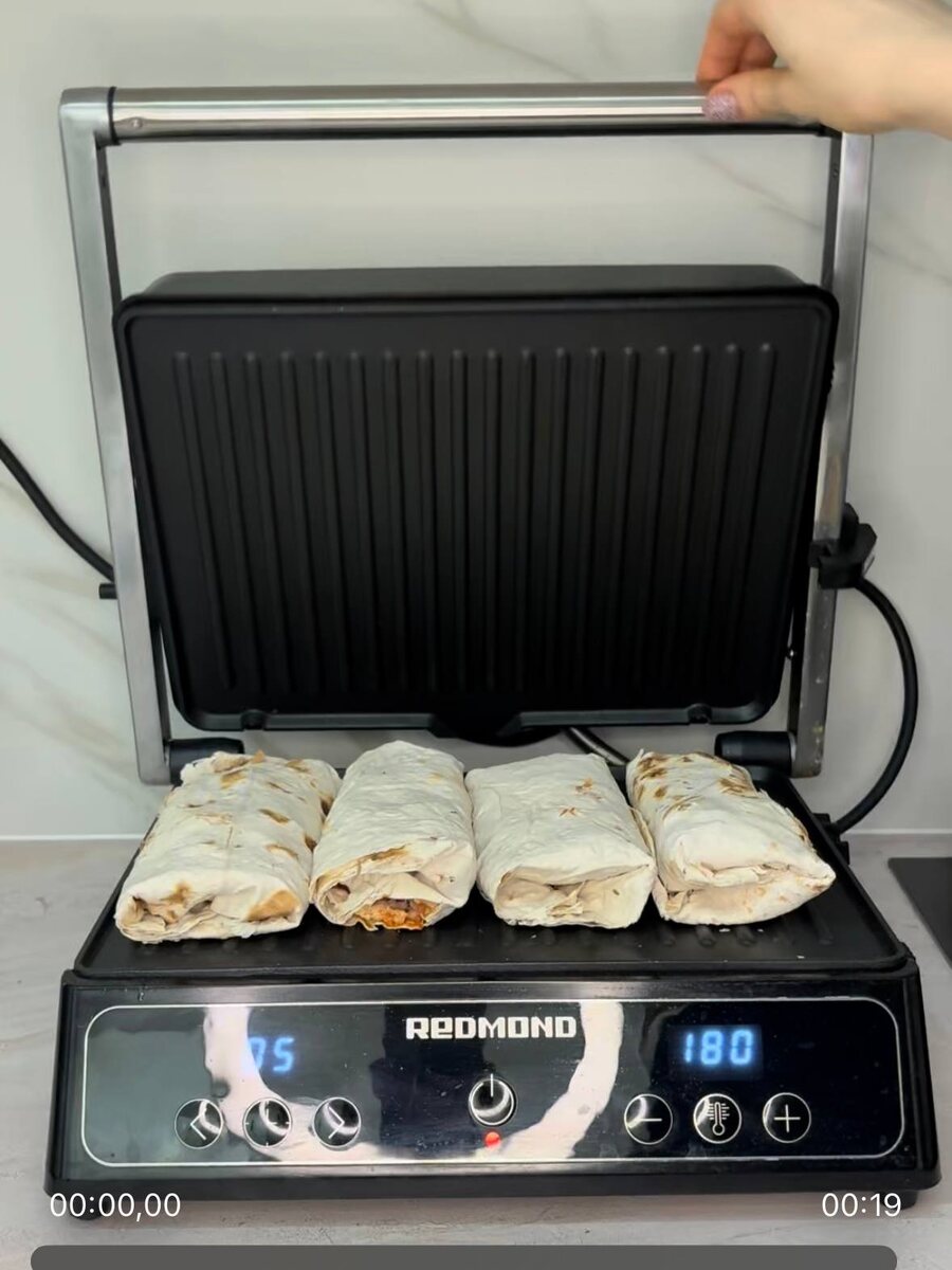 Шаг 4: Завернутые шаурмы поместить в разогретый гриль на 5 минут до хрустящей корочки.