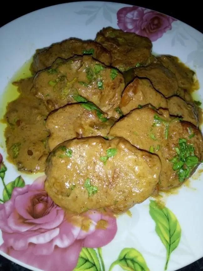Для начала нарезается свиная печень на ломтики, которые заливаются холодным молоком и оставляются на 30 минут. Это придаст блюду особую мягкость и нежность.