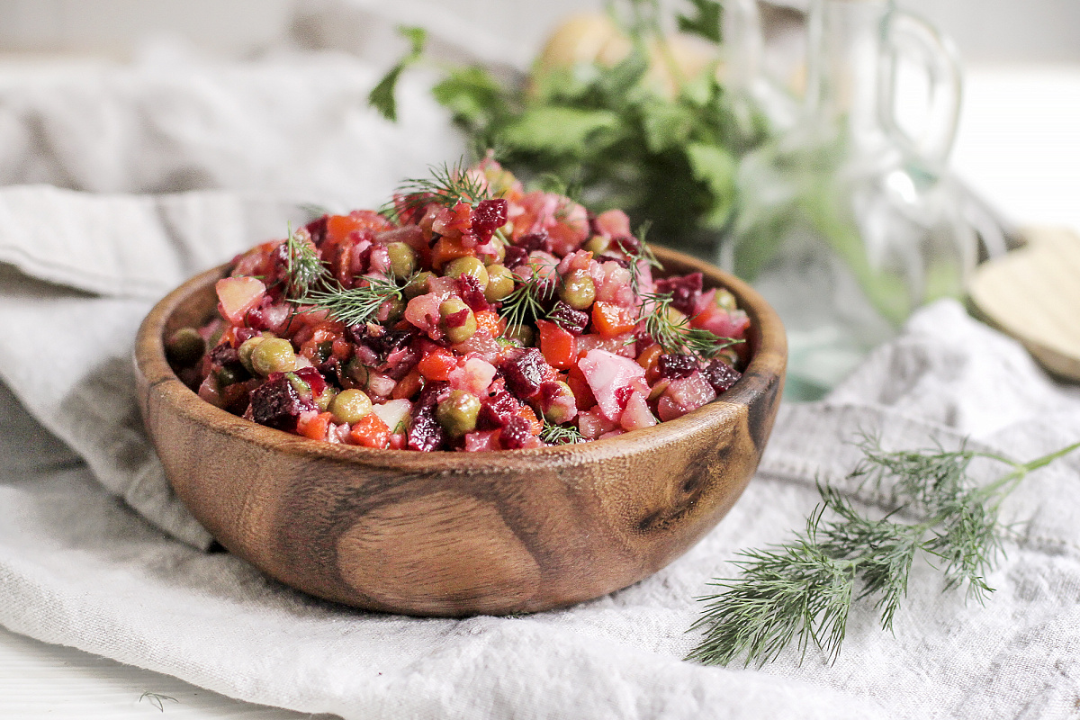 Новый взгляд на привычный винегрет не только порадует вас своей свежестью, но и привлечет внимание ваших гостей. Приятного аппетита!