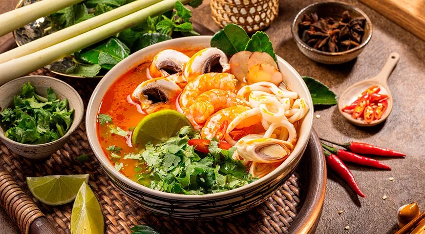 Том-ям — одно из самых узнаваемых блюд тайской кухни, славящееся своим ярким вкусом и душистым ароматом. Это суп, который существует в бесчисленных вариантах, каждый из которых может удивлять разнообразием ингредиентов.