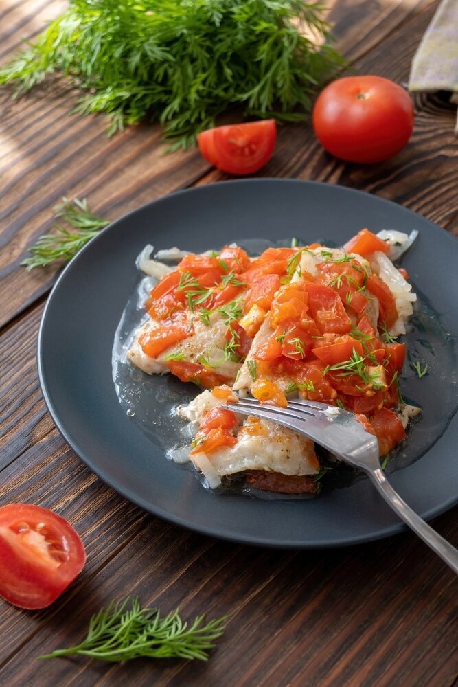 Ароматный минтай с помидорами и луком: простое и вкусное блюдо