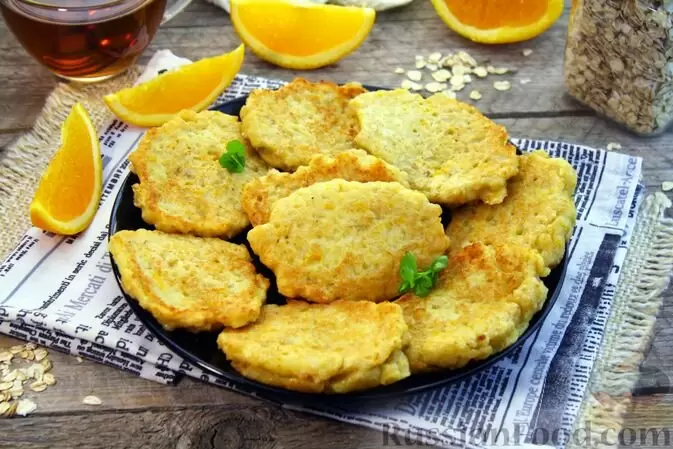 - Овсяные оладьи с апельсином: Золотистые оладьи, приготовленные из овсяной каши с добавлением свежевыжатого апельсинового сока и цедры, подарят вам нежный вкус и цитрусовую свежесть. Идеальный вариант для использования оставшейся овсянки.