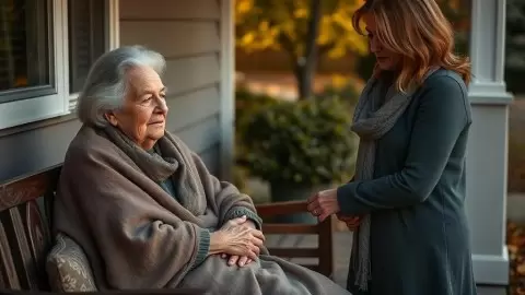 Когда мать проснулась, она попросила выйти на улицу. С помощью дочери она натянула кофту и взяла трость. Во дворе все еще чувствовалась влажность после дождя, и Марина аккуратно считала шаги, чтобы помочь матери.