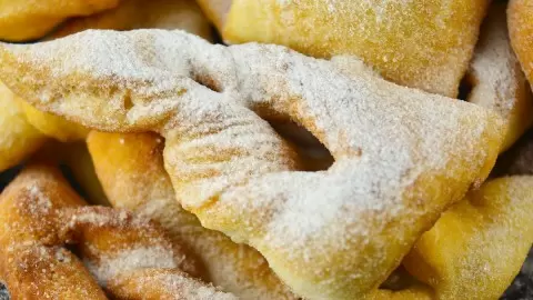 Этот хворост имеет идеальную золотистую корочку и невероятно вкусен. Попробуйте приготовить это простое, но очень вкусное лакомство!