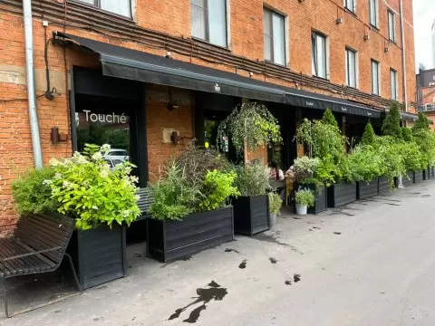 Хотя Touche позиционируется как винный бар, интерьер более напоминает ресторан с домашним уютом. Мягкие диваны, обилие живых растений и летняя веранда с большими открытыми окнами создают атмосферу тепла и уюта. Открытая кухня, где видно процесс приготовления блюд, добавляет взаимодействия с посетителями.