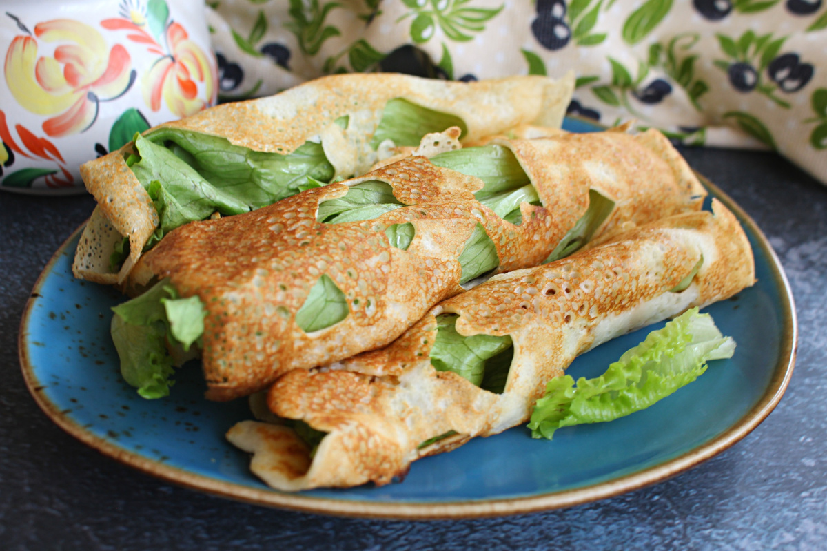 Эти блины исчезают с тарелки в одно?ение. Они имеют тонкое тесто и легкую, аппетитную начинку, которая удивляет своим вкусом. К салатным листьям можно добавить различные зелени, а также свежий огурец или авокадо для разнообразия. Выбор рыбы также не ограничивается, подойдет любая красная рыба — соленая или малосоленая. Перед готовкой листья салата необходимо тщательно промыть и обсушить, чтобы не тратить время в процессе. Приготовление этих блинов быстрое, простое и увлекательное. Они выглядят так привлекательно, что трудно удержаться от добавки.