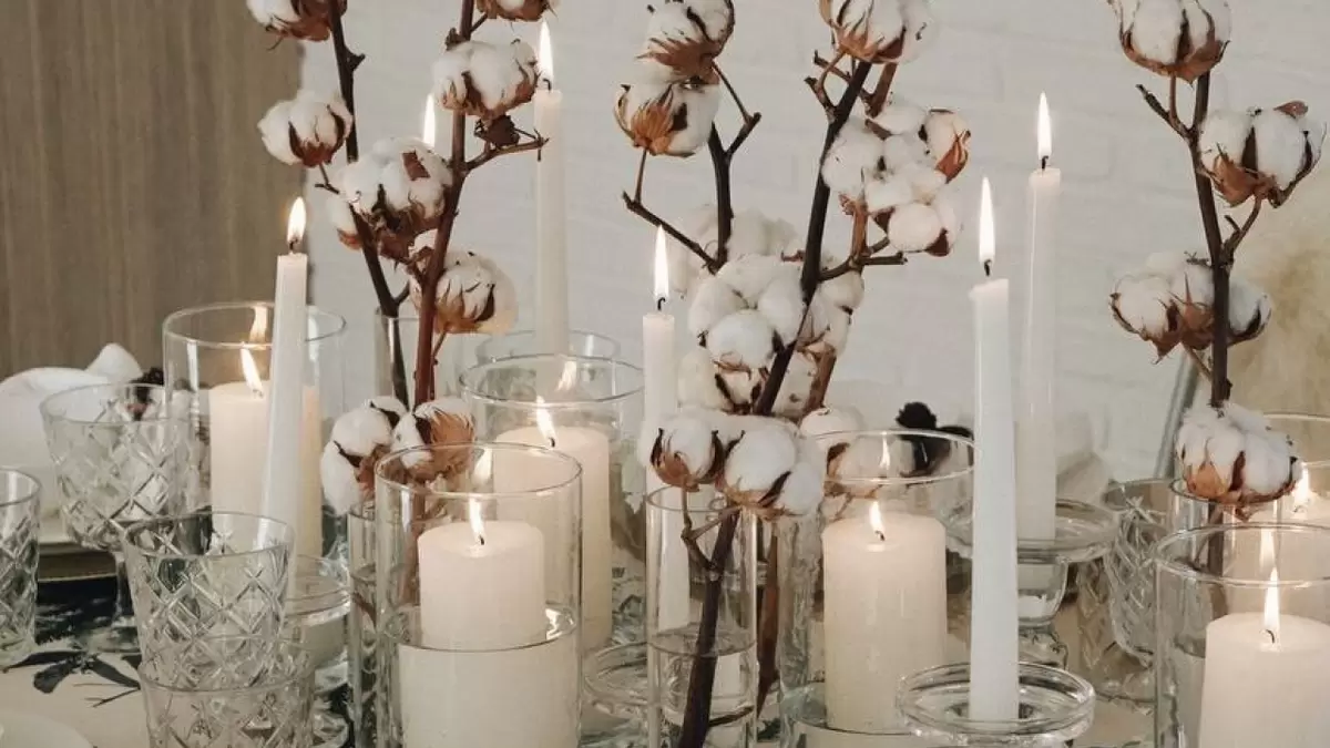Одним из самых простых и стильных решений может стать хлопок. Этот красивый сухоцвет станет отличной заменой привычной ели. Он не только оставит новогоднее настроение, но и добавит нотку свежести. Простые пушистые комочки прекрасно дополнят зимний декор, создавая атмосферу уюта, как будто вы находитесь в загородном домике под Вологдой.