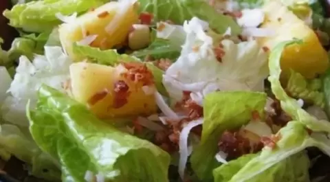 Теперь пора заняться нарезкой: ветчину следует нарезать соломкой, пекинскую капусту – тонкими полосками, а куриное филе разбрать на волокна или нарезать. Добавление корейской моркови придаст блюду особую пикантность, а нарезанные ананасы добавят сладость и свежесть.