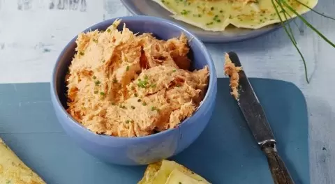 Соединить рыбную массу с масляной основой, добавить лимонную цедру и сок, тщательно поперчить и, при необходимости, посолить. Взбить смесь с помощью погружного блендера до достижения однородной консистенции. Паштет готов к подаче — желательно его подавать при комнатной температуре.