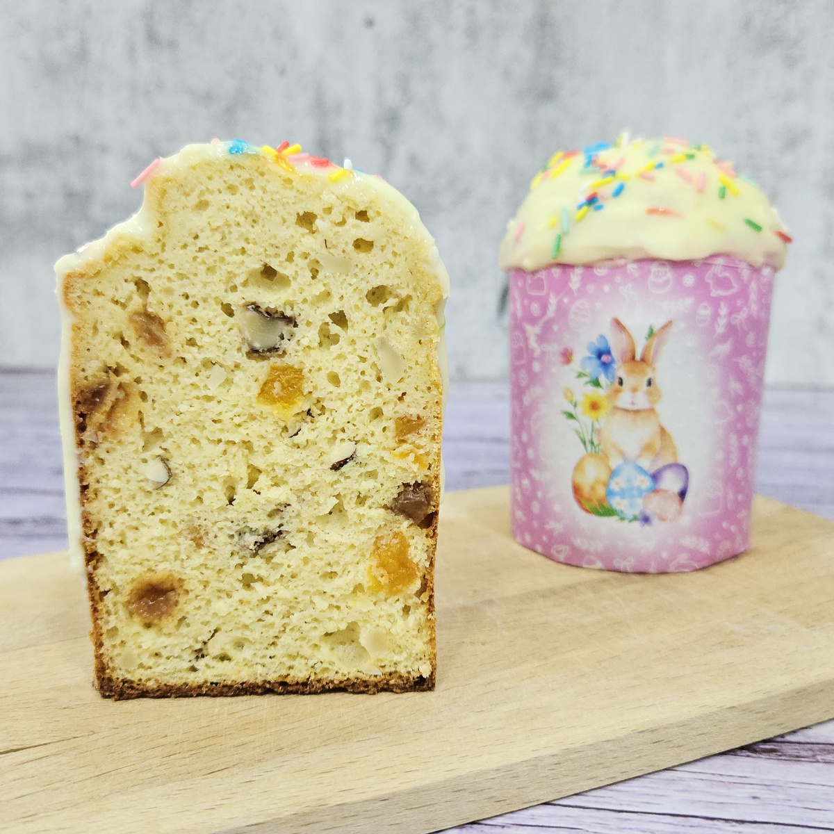 На завершающем этапе добавьте подготовленные сухофрукты и орехи, аккуратно перемешайте массу и распределите по формочкам. Выпекайте куличи в заранее разогретой до 165 градусов духовке в течение 40-45 минут, после чего оставьте в выключенной духовке на 30 минут с приоткрытой дверцей. Затем охладите на решетке.
