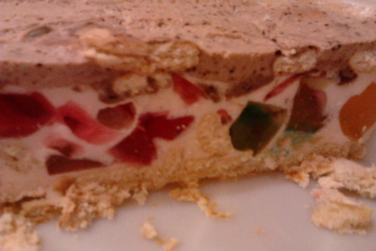 Приготовьте желе по инструкции на упаковке — используйте меньше воды, чтобы оно получается более плотным. Дайте желе застыть.Застывшее желе нарежьте кубиками и разместите их в широкой емкости, в которой будет формироваться торт.Залейте желатин 100 мл холодной воды и дайте ему постоять 10 минут. Затем аккуратно нагрейте его на слабом огне, не доводя до кипения.Взбейте кефир с сахаром, постепенно добавляя желатин и щепотку ванили.Вылейте желейную массу в форму, оставив около 100 мл в другой посуде, куда добавьте какао и хорошенько перемешайте. Вылейте какао-смесь в форму, и сверху выложите крекеры в ровный слой.Оставьте торт в холодильнике для застывания. После того, как он застынет, аккуратно переверните его на поднос, подержав форму немного в горячей воде, чтобы торт легче извлекался. Кофейный слой станет основой торта.