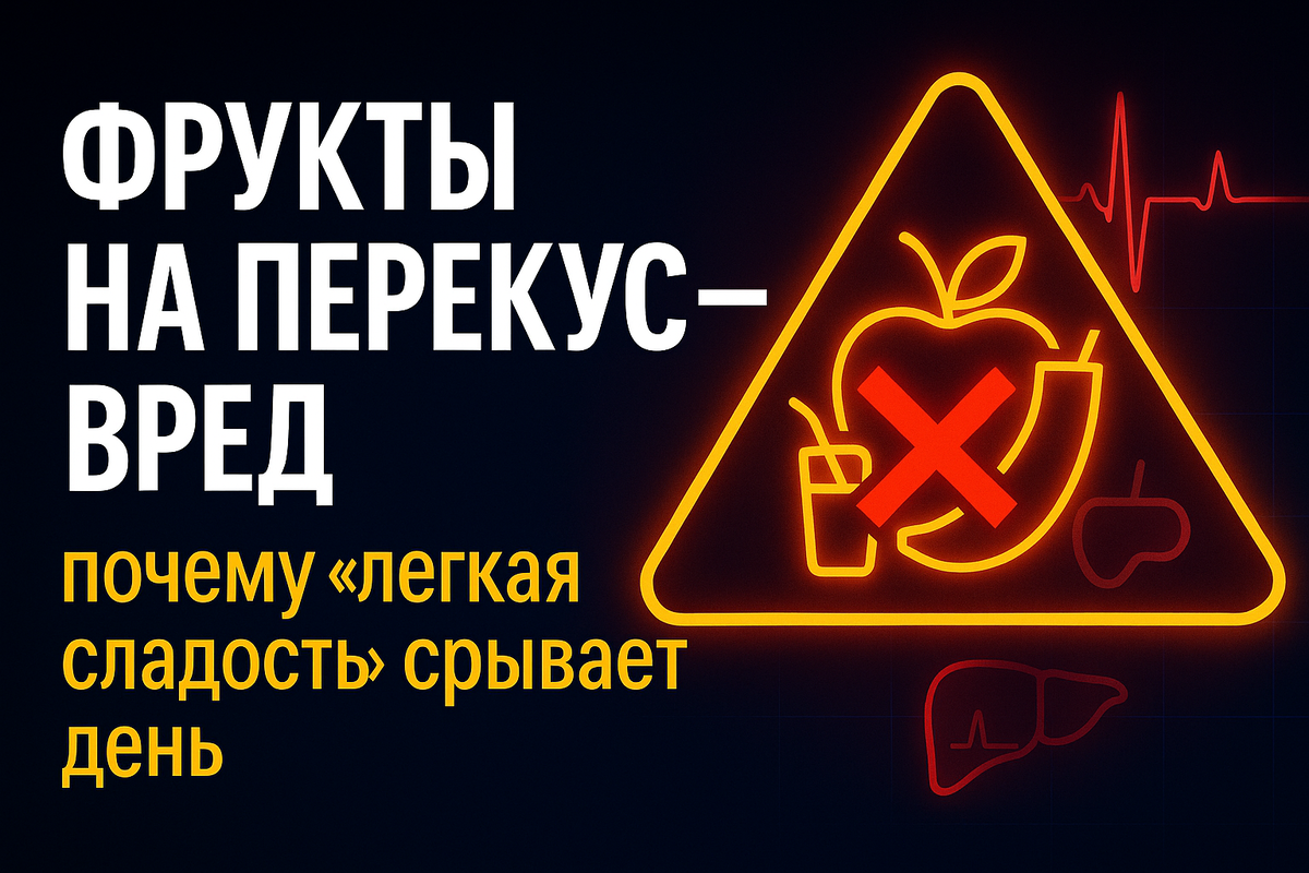 Всем известная практика перекуса фруктами кажется очевидно полезной: «Взял яблоко — хорошо для здоровья», «Банан зарядит энергией перед встречей», «Горсть винограда приятно освежит между делами». Однако, если разобраться в биохимии, такая привычка может привести к непредсказуемым последствиям.