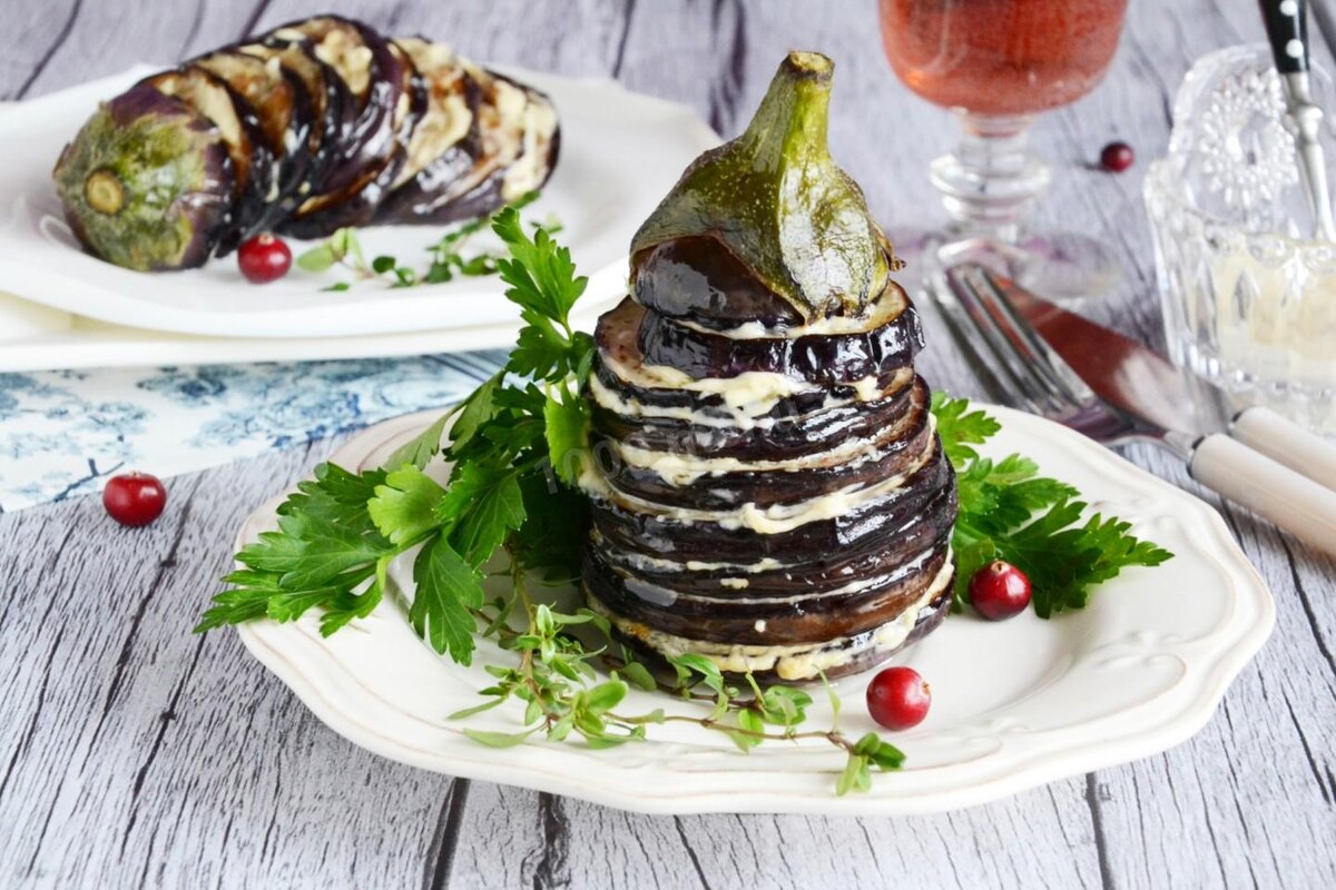 Каждый кружочек баклажана смажьте приготовленным соусом (примерно по 1-2 столовые ложки) и выложите на красивое блюдо, стараясь сохранить порядок. Такие жареные баклажаны отлично подойдут в качестве закуски или легкого основного блюда. Приятного аппетита!